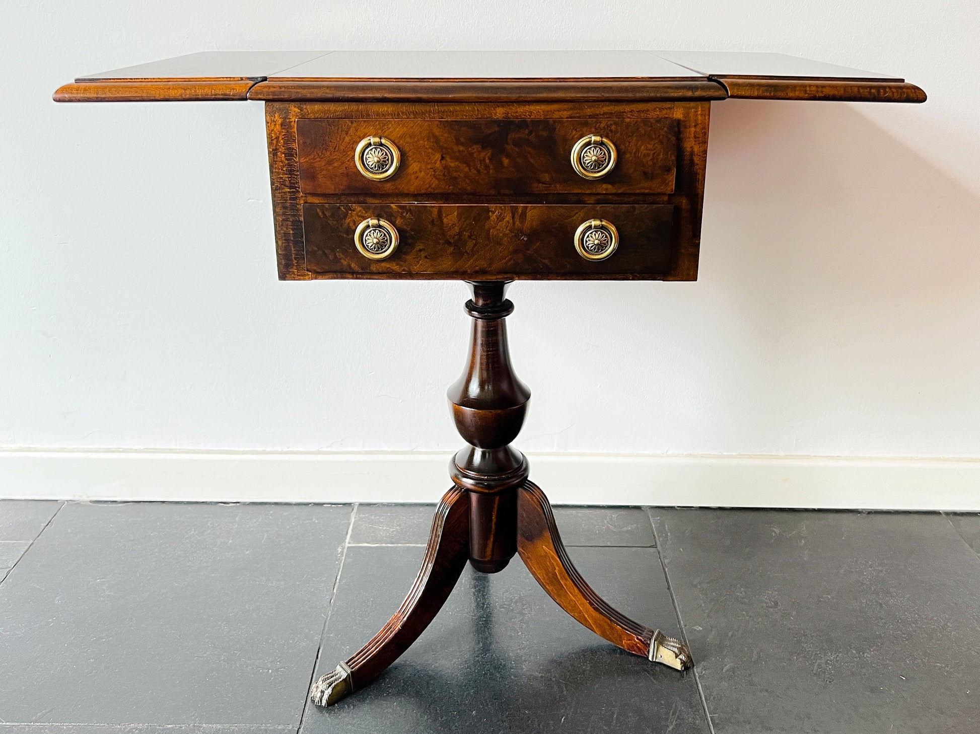 An antique Pembroke side table with folding drop leaves and brass claw legs characterised by classic proportions and fine craftsmanship.