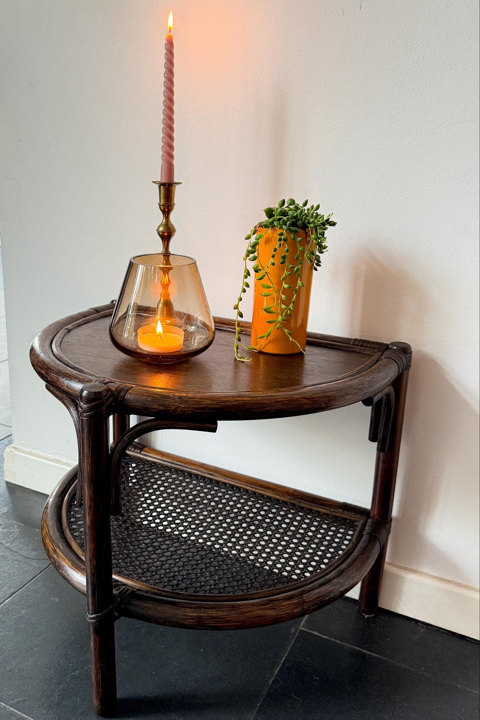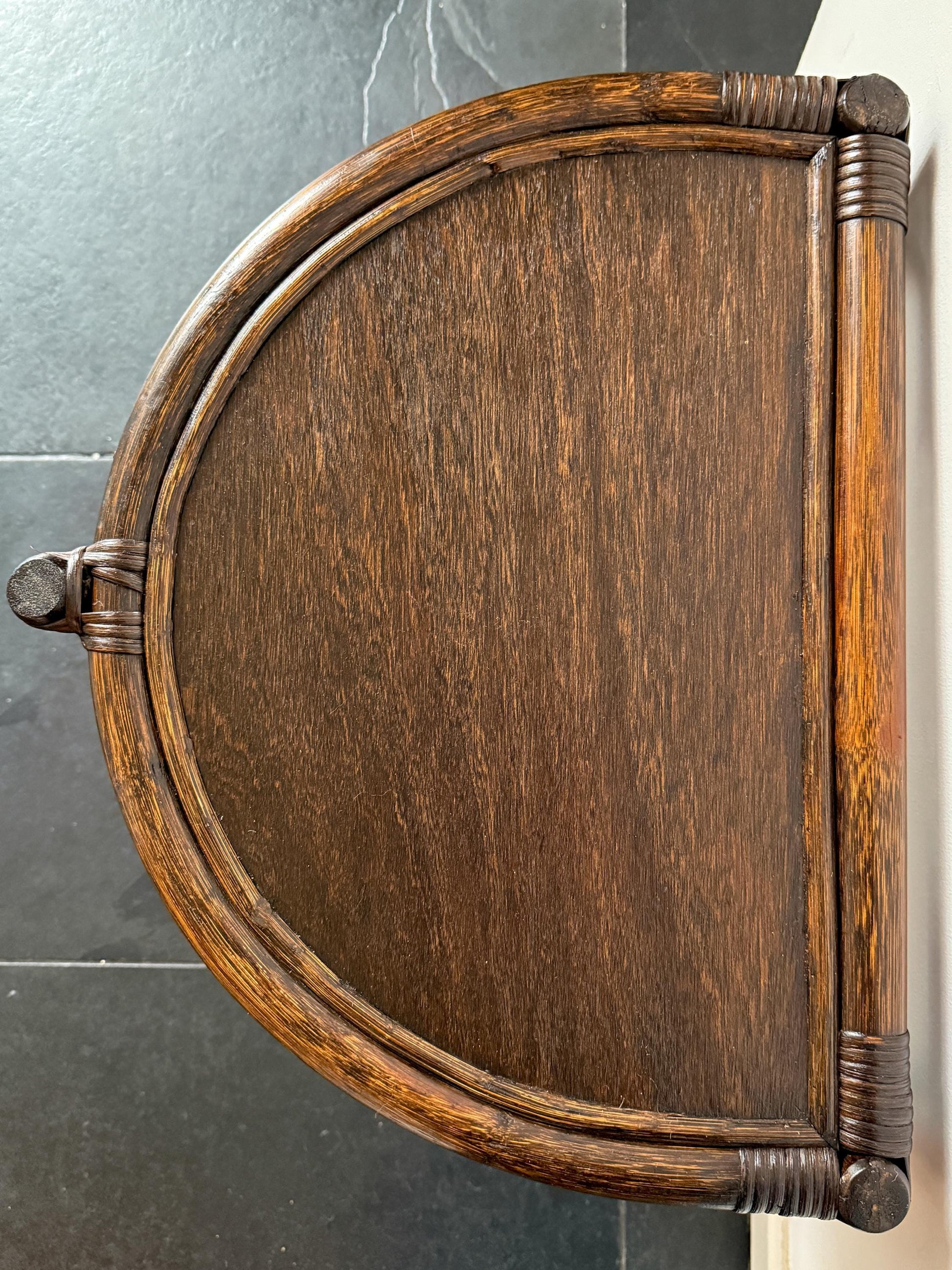 Vintage Rattan & Cane Half-Moon Wall Table | Mid-Century Bohemian
